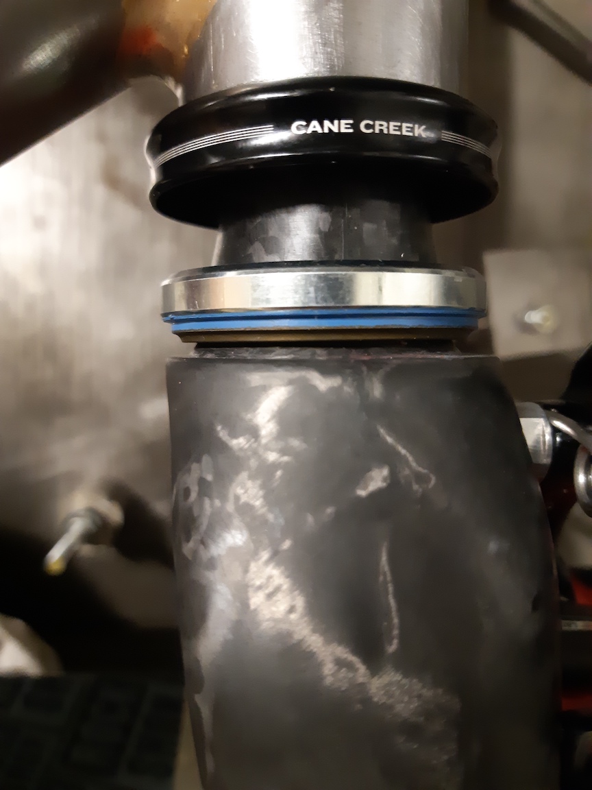 Il faut que ça épouse la partie conique de la fourche donc l’intérieur de l’anneau doit lui aussi être conique. Sinon trouver un autre roulement qui ne viendrait pas toucher la base du pivot une fois monté. J’ai de vague souvenirs qui remontent et je crois que j’avais finalement revendu la fourche avec ce genre de montage.